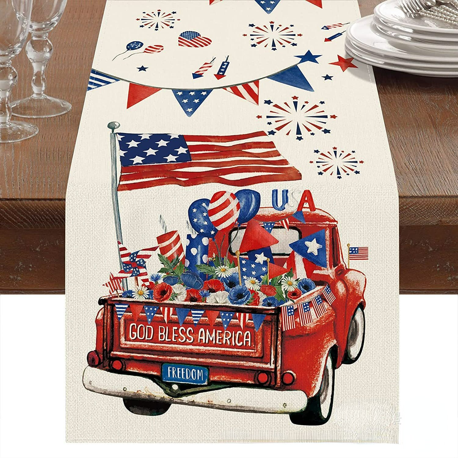 1PC Rectangle Linen Blend Striped Table Runners; Encryption Linen Home Decoration Independence Day Atmosphere Waterproof Table Runner; 72"*13"; Patrio 1PC Rectangle Linen Blend Striped Table Runners; Encryption Linen Home Decoration Independence Day Atmosphere Waterproof Table Runner; 72"*13"; Patrio 1PC Rectangle Linen Blend Striped Table Runners; Encryption Linen Home Decoration Independence Day Atmosphere Waterproof Table Runner; 72"*13"; Patrio