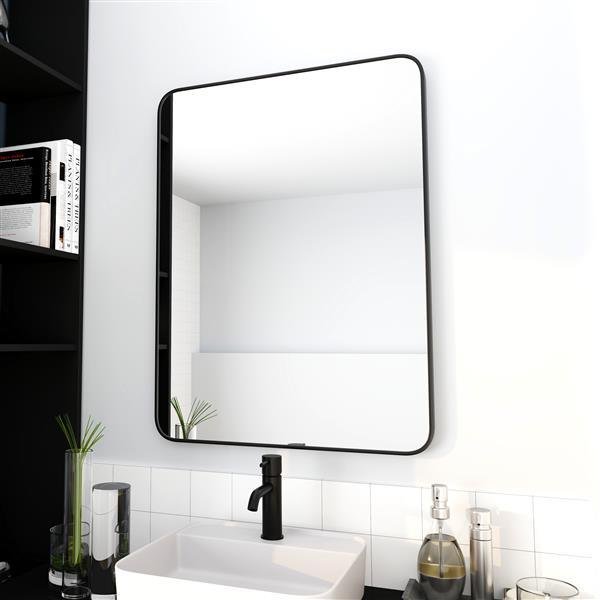 Exceptional QualityThe bathroom wall mirror is copper-free without paint layer or toxic odor, safer for children, seniors, and pets. Suitable multiple occasions: Bathroom, Entryway, Living Room, Bedroom, Dining Room, Hallway. ⭐Sturdy AL-Alloy Metal Frame creating a durable structure for longer working life⭐Crystal Clear ReflectionHigh-quality mirror ensures a bright view and real HD image without deformation. The best products start with the best materials. That is why we insist to source premium materials and using high-quality Aluminum Alloy Frame, 4MM HD Glass, and PVC Backboard for each of our bathroom mirrors.Mounting WaysWall-mounted suspension can be installed vertically or horizontally according to customer requirements.Installation Tips:1. The mirror can be hung on the wall, make sure your space is proper fit before install; 2. Our bathroom mirror at least two people available to install the mirror is recommended. (Deviation may exist as the dimensions are measured manually, please allow 0.5 inch differences due to manual measurements)Material: Aluminum Alloy Frame, 4 mm Glass and PVC Backboard.Frame Color: Black