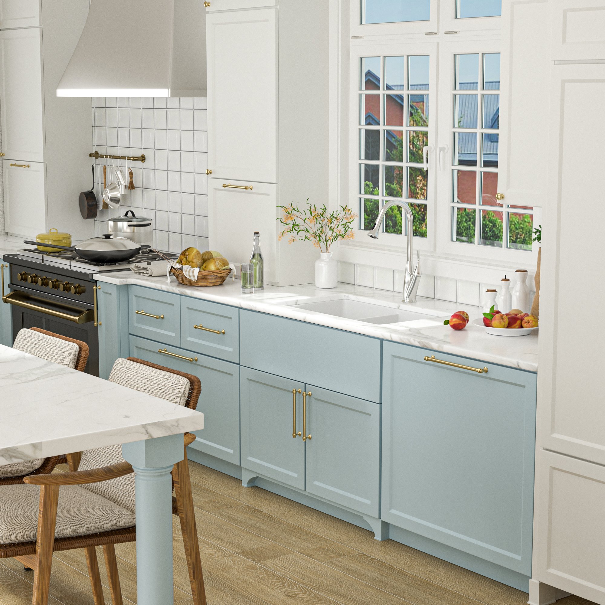 4.32 inch undermount sink is designed with flat bottom gently sloped toward to the center drain.The flat bottom of kitchen sink ensures the dishes or wine cups standing sturdy without any slipping.But the slightly declined bottom to center drain makes chasing stuff to it easier and prevents the farm sink from pooling.Thanks to easy to clean rounded corner, this kitchen sink is super easy to clean.