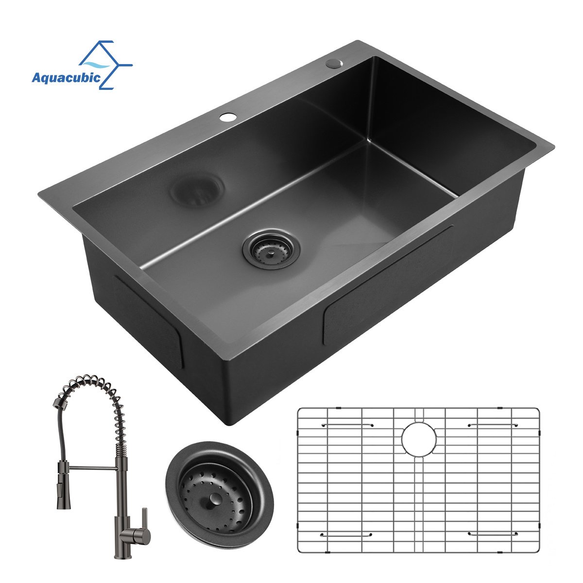 Aqucubic Gunmetal Black CUPC Handmade 304 Stainless Steel Topmount Kitchen Sink with Accessories and faucet Aqucubic Gunmetal Black CUPC Handmade 304 Stainless Steel Topmount Kitchen Sink with Accessories and faucet Aqucubic Gunmetal Black CUPC Handmade 304 Stainless Steel Topmount Kitchen Sink with Accessories and faucet
