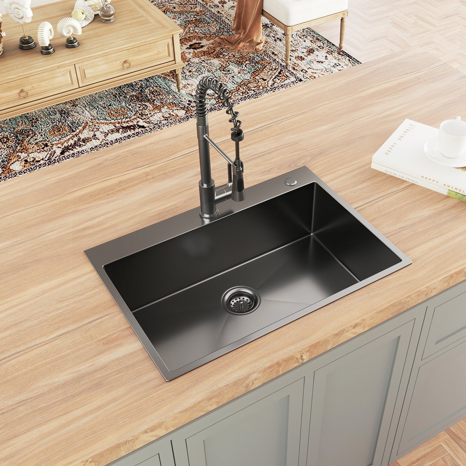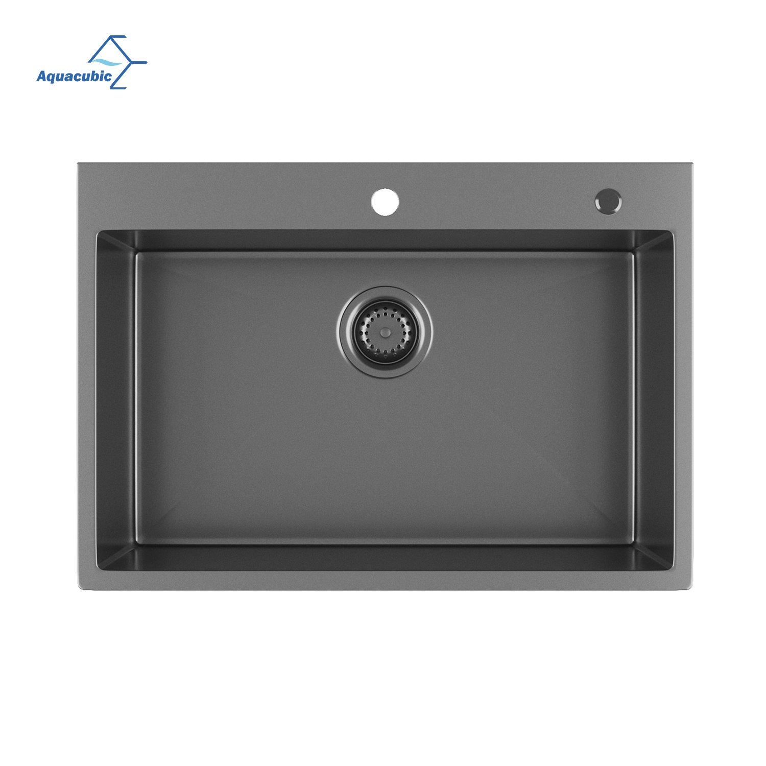 Aqucubic Gunmetal Black CUPC Handmade 304 Stainless Steel Topmount Kitchen Sink with Accessories and faucet Aqucubic Gunmetal Black CUPC Handmade 304 Stainless Steel Topmount Kitchen Sink with Accessories and faucet Aqucubic Gunmetal Black CUPC Handmade 304 Stainless Steel Topmount Kitchen Sink with Accessories and faucet
