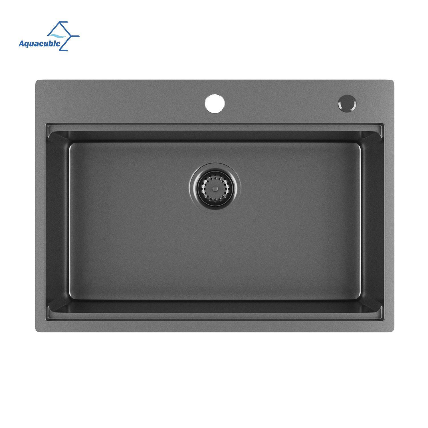 Aqucubic Gunmetal Black CUPC Handmade 304 Stainless Steel Topmount Kitchen Sink with Accessories and faucet Aqucubic Gunmetal Black CUPC Handmade 304 Stainless Steel Topmount Kitchen Sink with Accessories and faucet Aqucubic Gunmetal Black CUPC Handmade 304 Stainless Steel Topmount Kitchen Sink with Accessories and faucet