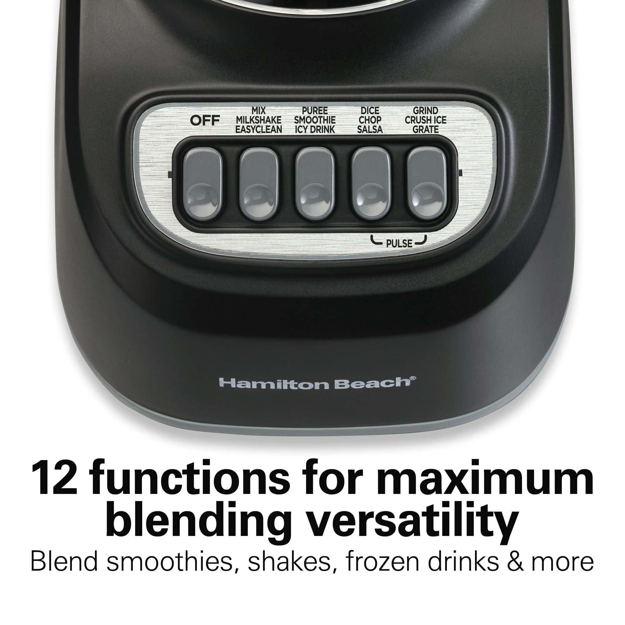 12 functions for maximum blending versatility: easily blend smoothies, shakes, frozen drinks and more. The 5 simple buttons clearly indicate each function, so there's no guesswork.