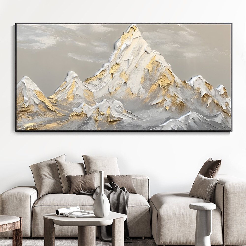 Hand Painted Oil Painting White Snow Mountain Art On Canvas Gold Leaf Texture Painting Abstract Landscape Oil Painting Wabi Sabi Wall Art Minimalism S