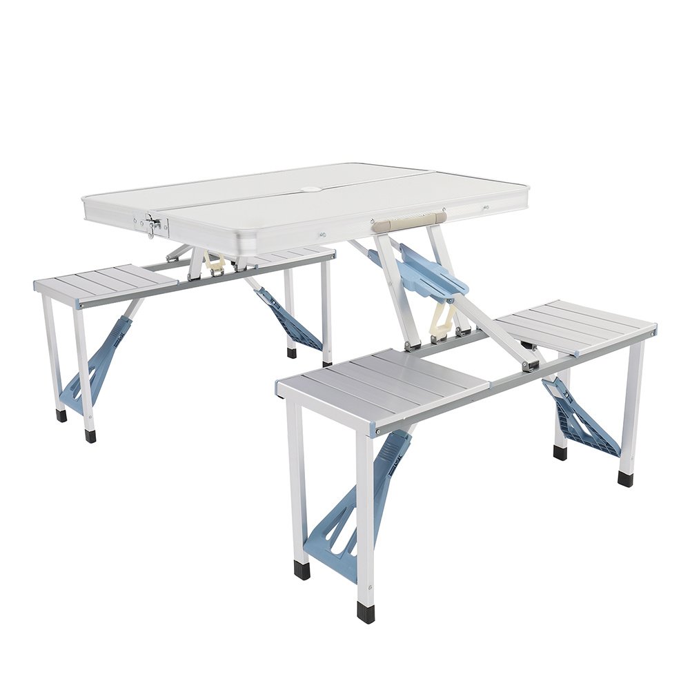 If you like picnic or want to have a comfortable environment in the trip; this One-piece Portable Folding Table with Stool will be your best choice. This is a portable outdoor camping folding table. It is made of high quality aluminum alloy material; durable in use. It is great for camping or day trips in the forests or garden set use. Moreover; it is foldable and lightweight; easy to transport. So; the table can be carried easily; just like a suitcase. It is a very good product; what are you waiting for?