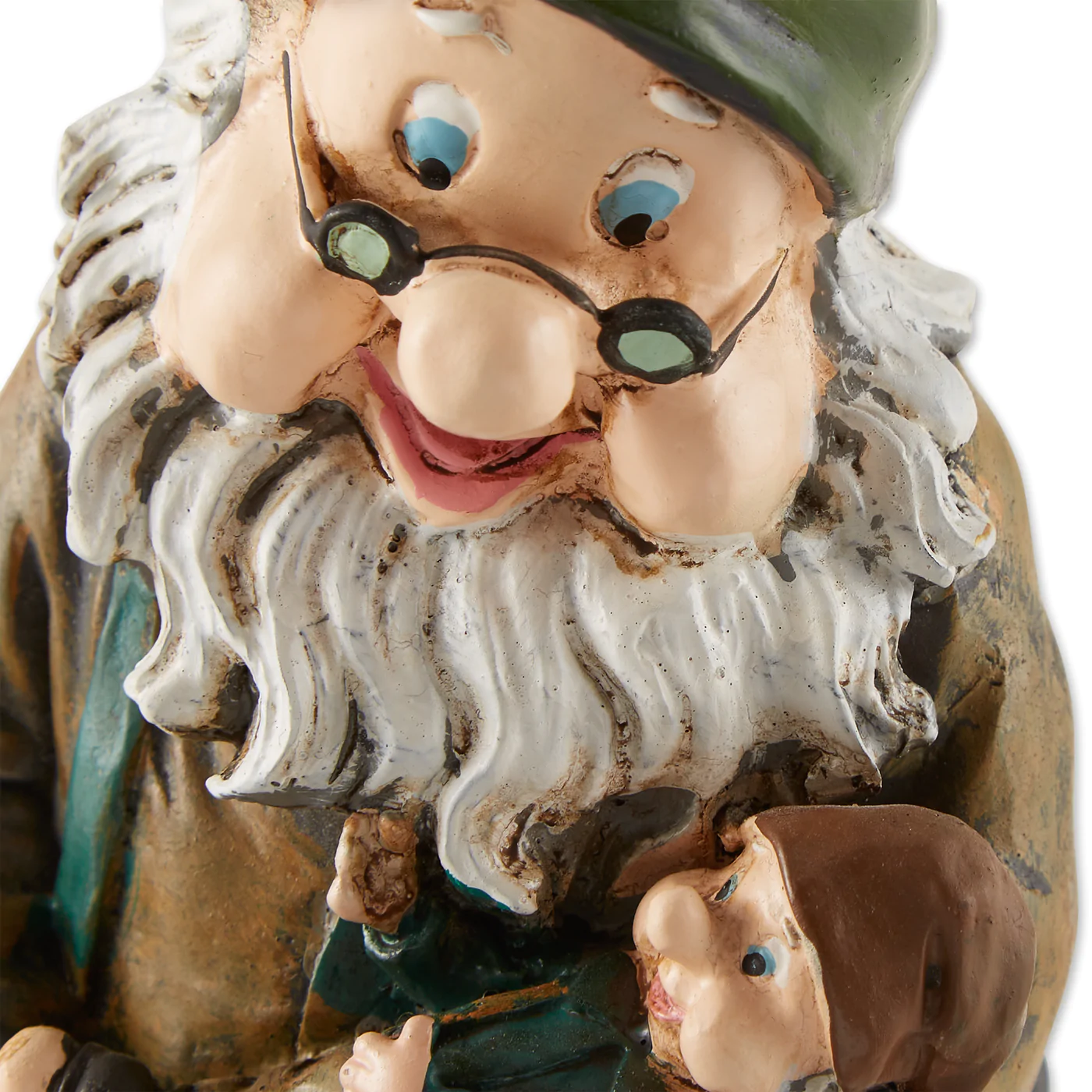 • No house is a home without its very own guardian gnome! An apple-cheeked grandfather is loving, while tenderly cradling his tiny grandson. A charming take on the timeless classic yard decoration, scaled down to fit most anywhere, indoors or out.