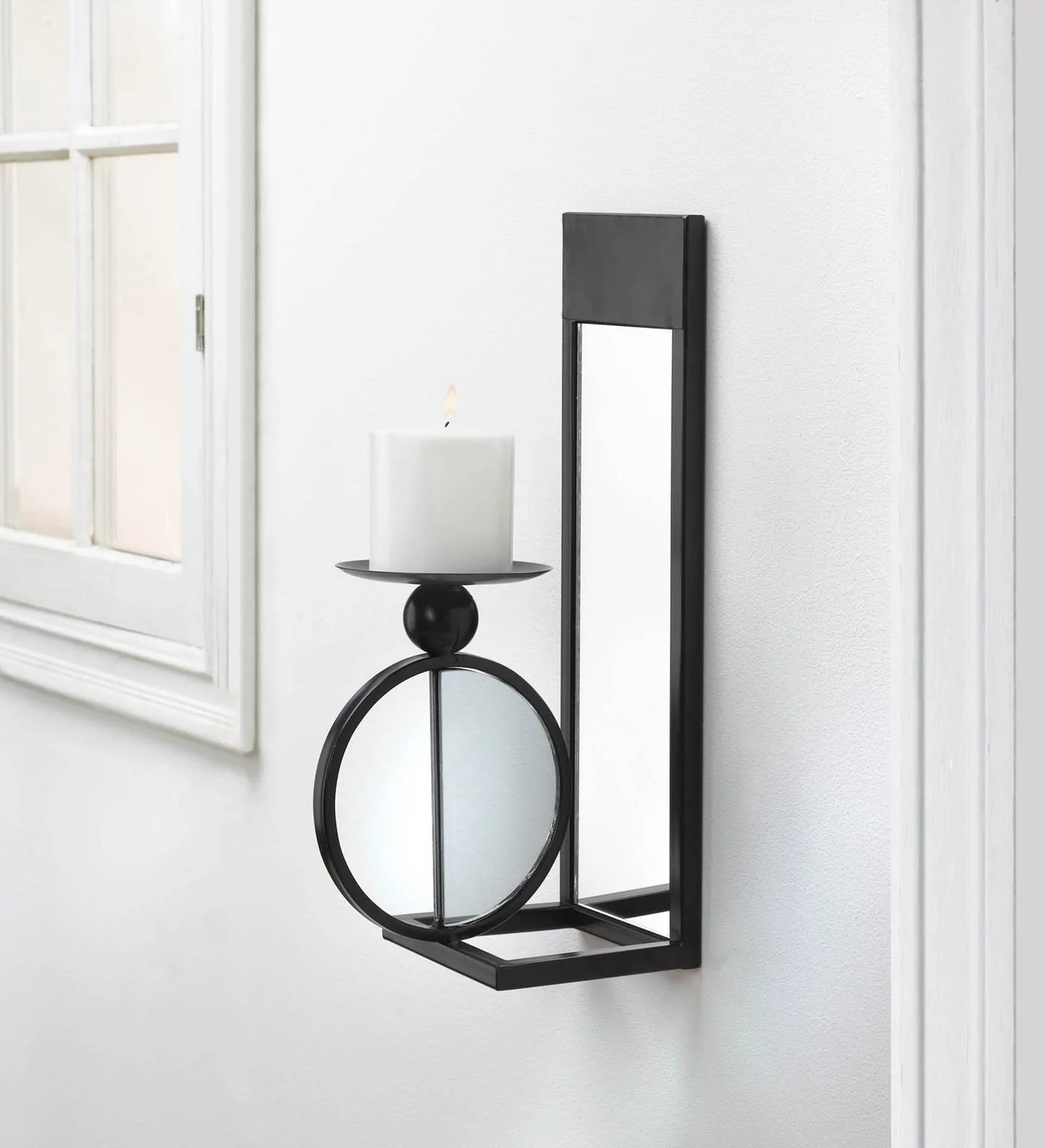 • Bring light and beauty to any space with this simple, industrial black mirrored wall sconce. Its sleek style, complimented with its chic, black finish is the perfect statement for simplicity and style.