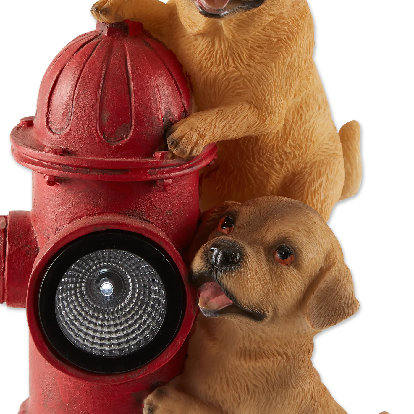 DOGS AND FIRE HYDRANT SOLAR STATUE