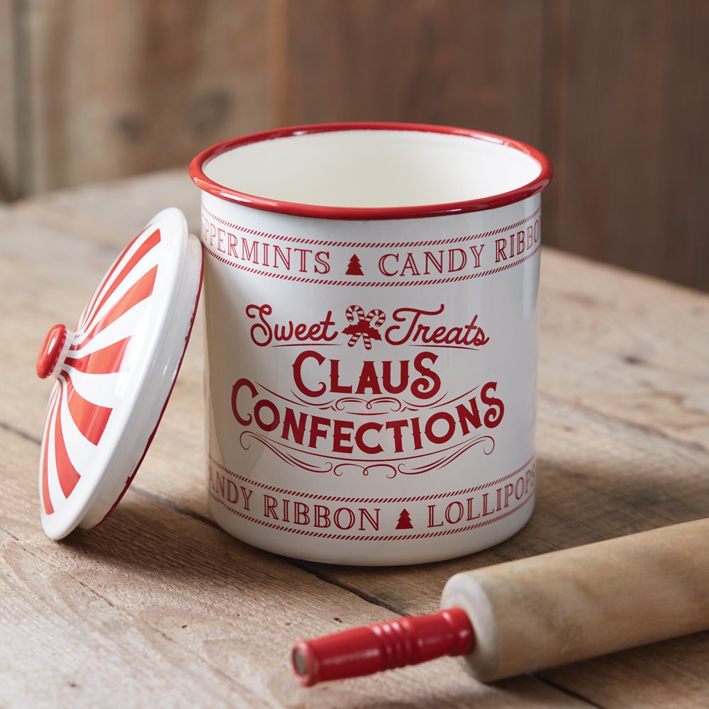 Claus Confections Enameled Christmas Container