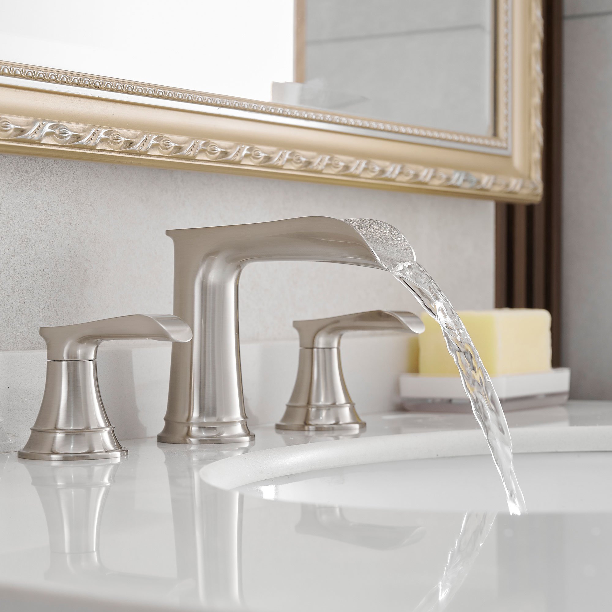 The new model is beautiful and practical Waterfall Bathroom Sink Faucet 3 Hole Dual Handle 8 Inch Bath Faucet with Plastic Perforated Drainer The new model is beautiful and practical Waterfall Bathroom Sink Faucet 3 Hole Dual Handle 8 Inch Bath Faucet with Plastic Perforated Drainer The new model is beautiful and practical Waterfall Bathroom Sink Faucet 3 Hole Dual Handle 8 Inch Bath Faucet with Plastic Perforated Drainer