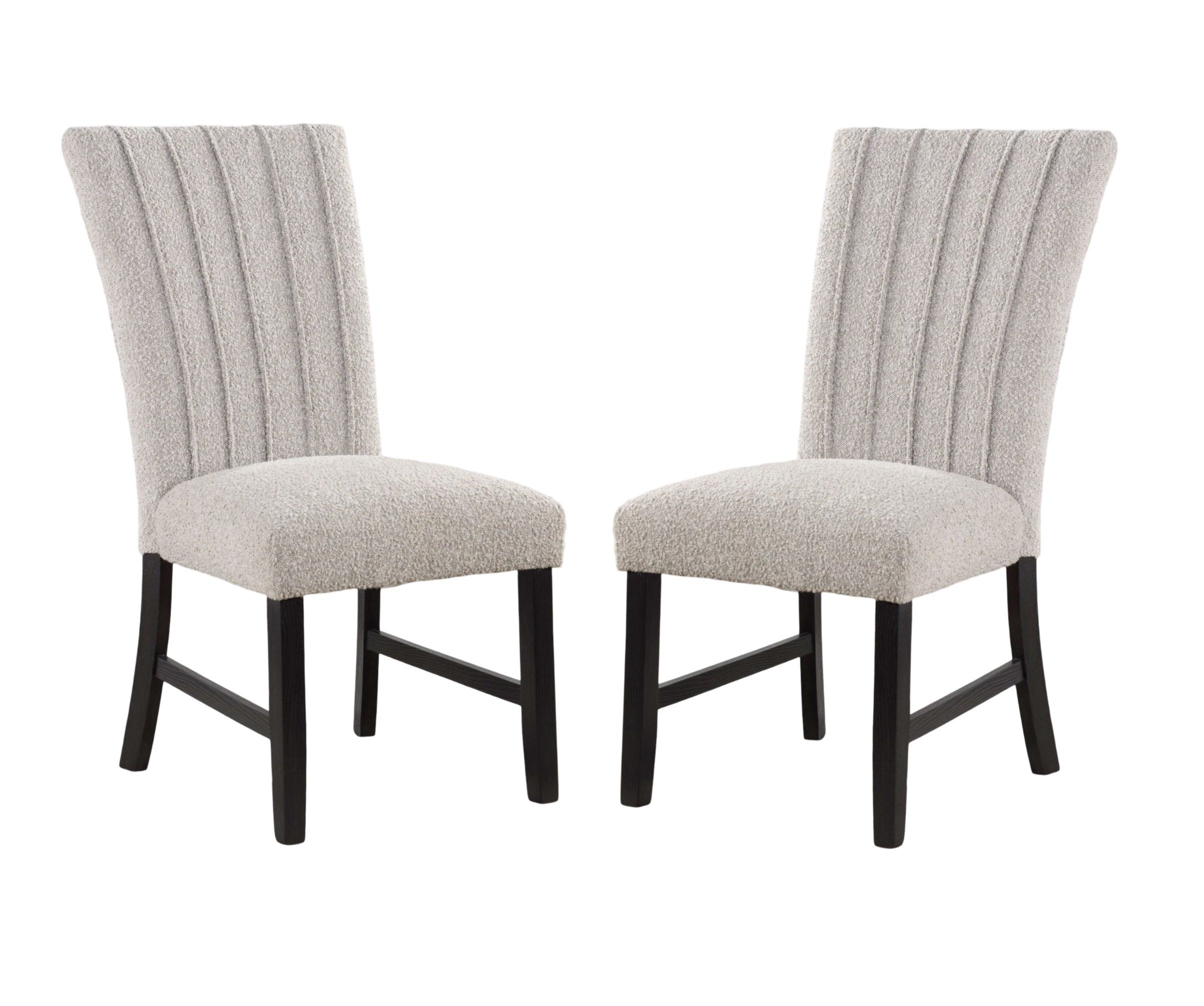 Spice up your space with an unexpected twist in textures! An interesting take on the classic parson chair, these are upholstered in boucle fabric with vertical pleats that add visual height. Black-finished legs and stretchers ensure that the fabric is the star of the show.